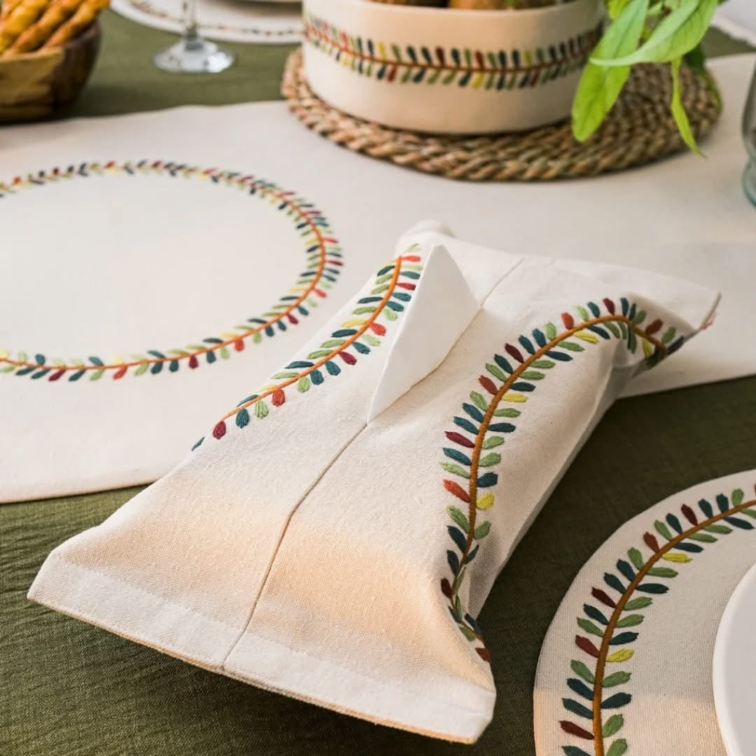 This machine-washable Autumn collection tissue cover features delicate embroidery, adding a touch of elegance to any room. Keep your tissues close by and stylish with this Fall wreath design. Perfect for adding a seasonal touch to your home decor.