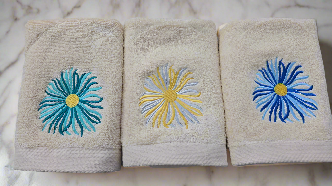 "This 3 handtowels set is made of 100% cotton, ensuring softness and super absorbency. These Flowers hand towels are machine washable for easy maintenance. Enjoy the luxurious feel of these towels while keeping your bathroom clean and tidy."