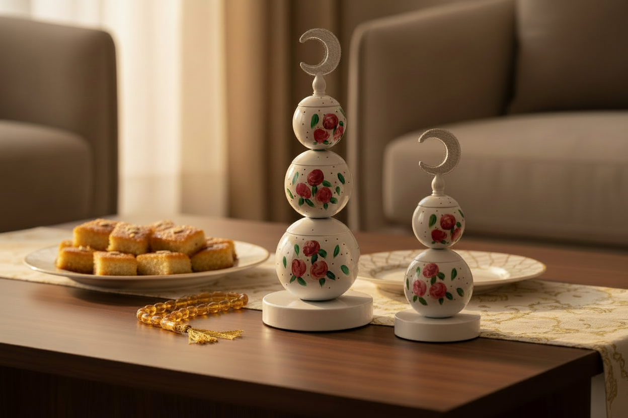The Ramadan lanterns are crafted from plated metal and feature a hand-painted design, enhancing their aesthetic appeal. Part of a dedicated Ramadan collection, these lanterns provide a traditional and cultural symbol during the holy month, perfect for creating a reflective atmosphere in any space.