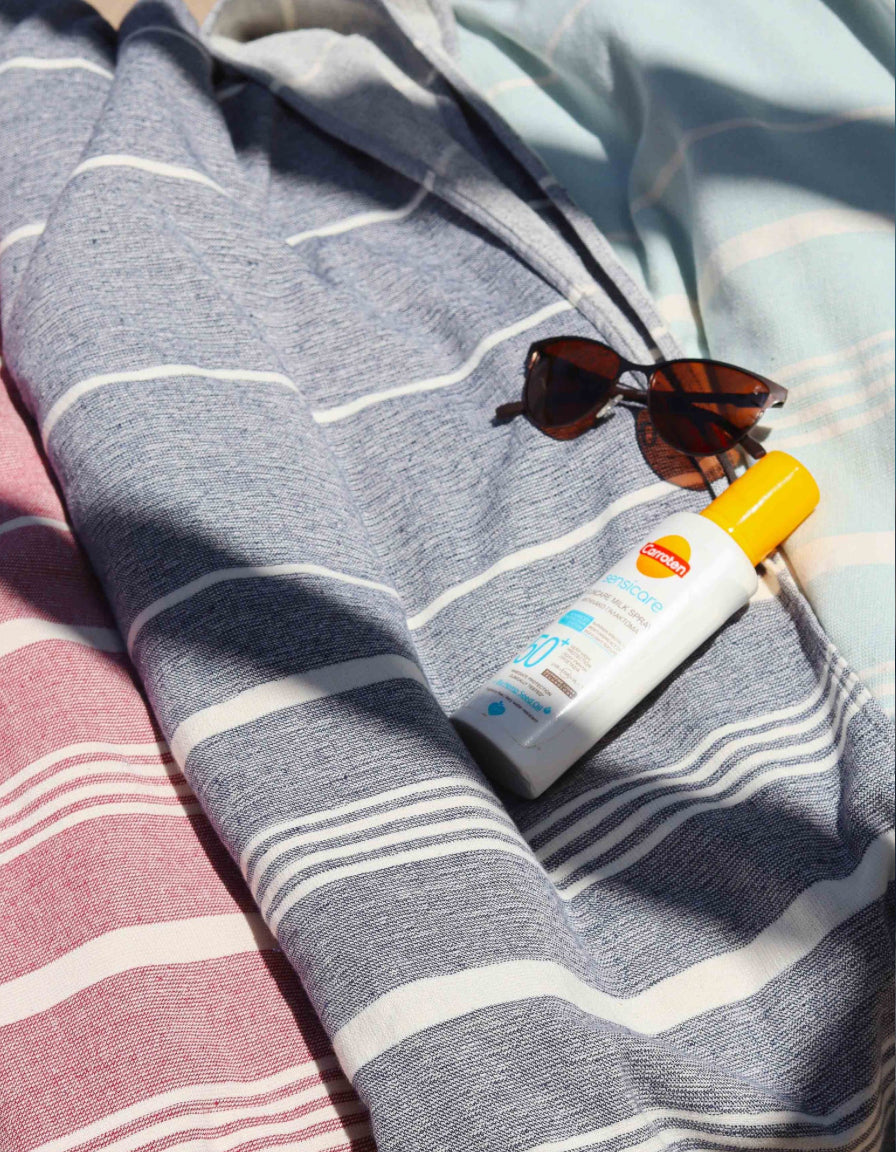 Made of 100% cotton, this towel is super absorbent and perfect for the beach. Plus, it's machine washable for easy cleaning. Stay dry and comfortable with this stripped hamam towel.